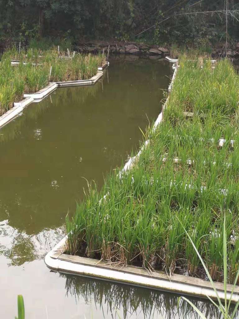 图3 人工浮床为载体种植水稻图